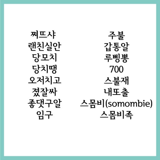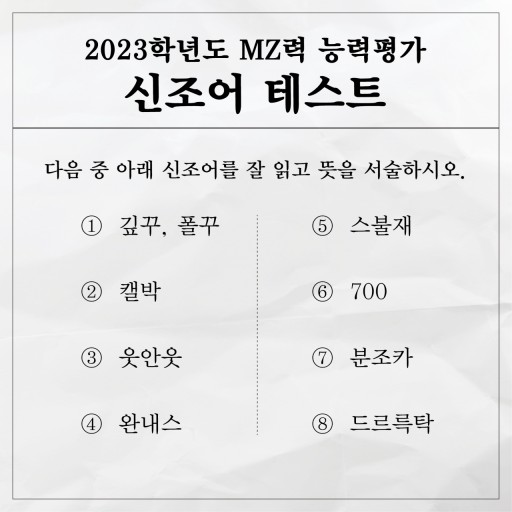 최근 MZ세대들이 자주 활용하는 신조어(저메추, 스불재, 억텐 등)를 소개하는 시간을 갖도록 하겠습니다.