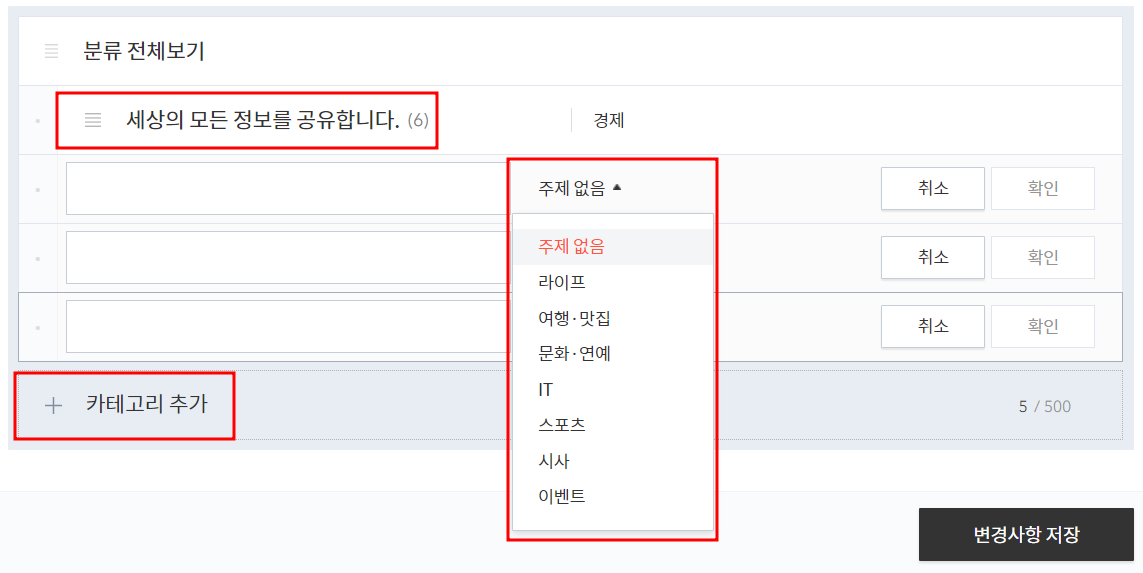 카테고리 순서 변경하기