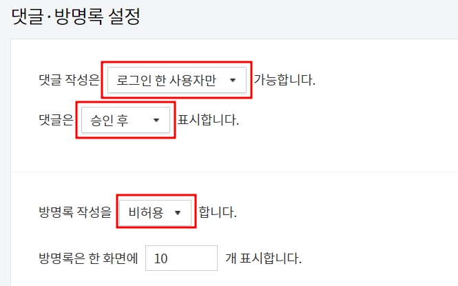 3. 댓글 및 방명록 설정하기