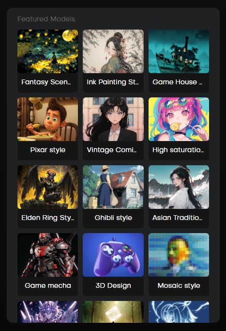 레퍼런스 영상을 업로드한 다음에는 적용할 모델을 선택해 줍니다. 모델을 클릭하면, 다양한 모델들을 선택할 수 있는데요, 실사느낌, 애니메이션, 판타지 스타일, 픽사 스타일 등 자신이 원하는 영상 분위기를 만들 수 있습니다.
